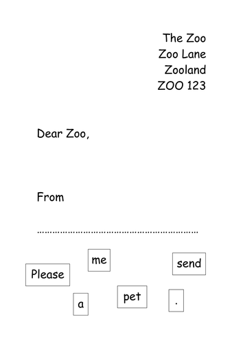 Dear Zoo Letter Writing Template Teaching Resources