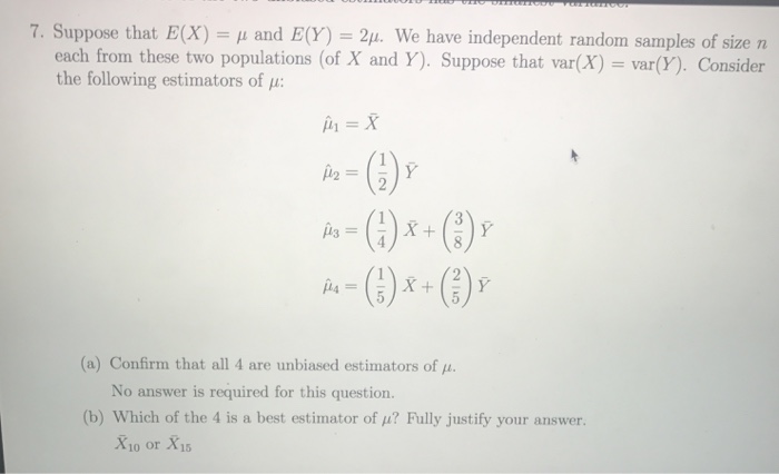 Solved Suppose That E X Mu And E Y 2mu We Have Ind Chegg Com