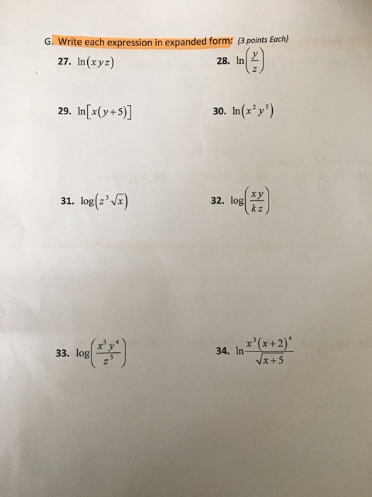 Solved 36 Write Log Xy In Expanded Form A 3 Log X L Chegg Com
