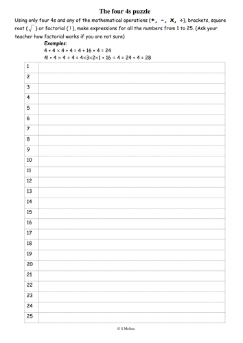 The Four 4s Puzzle Teaching Resources