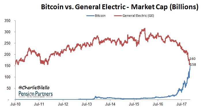 Charlie Bilello Sur Twitter At 160 Billion Bitcoin S Market Cap Just Passed Ge S Yes That Ge Founded In 1892 Once The Largest Company In The World 295 000 Employees 123 Billion In